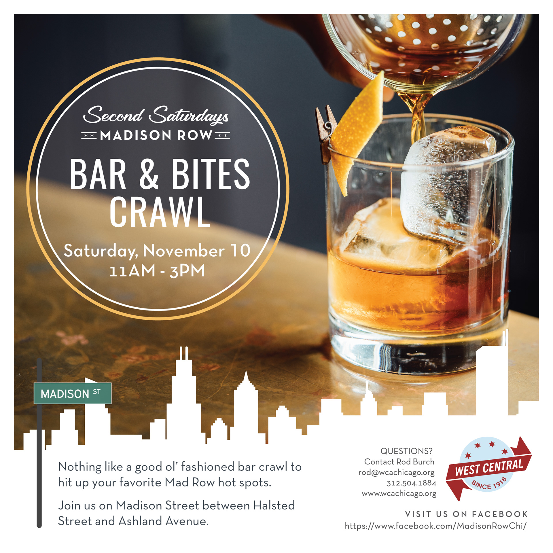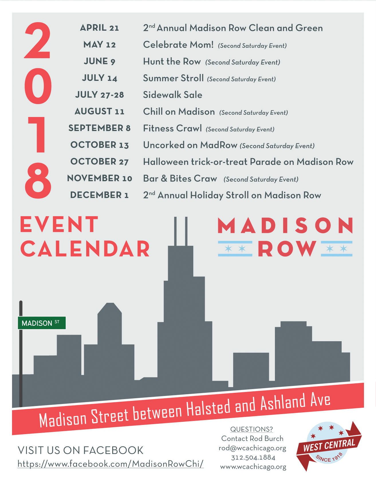 Event Branding and Marketing Materials created for the West Central Association's (WCA) promotion of Madison Row in Chicago.
